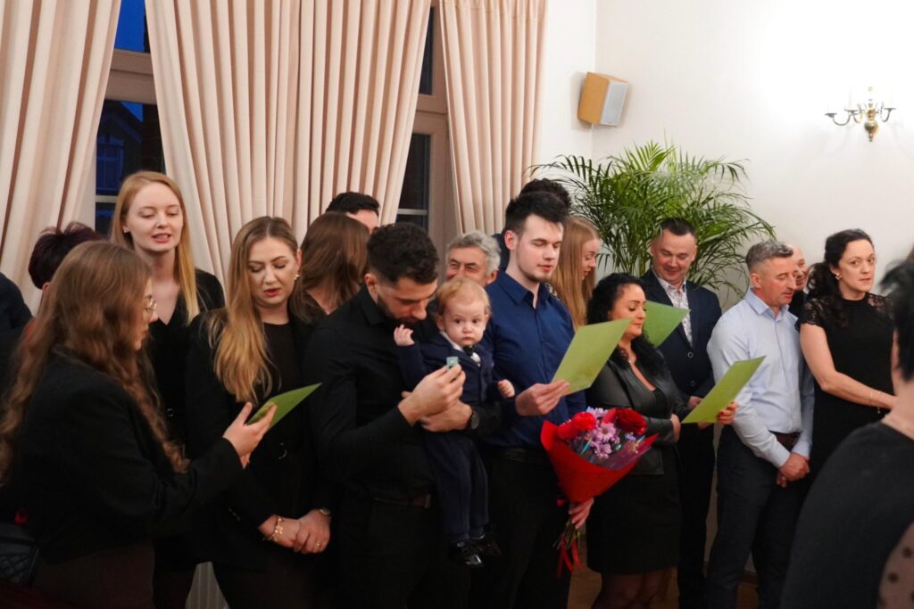 Dostojni jubilaci wychowali troje dzieci, z których każde poszło własną drogą, ale wszystkie wyniosły z domu te same wartości – uczciwość, odpowiedzialność i szacunek dla pracy. Najstarsza córka została dyrektorem szkoły, najmłodsza zdobyła wykształcenie medyczne, a syn – mimo prowadzenia własnej firmy – z dumą podtrzymuje rodzinne tradycje. Uprawia ziemię wiedząc, jak wiele znaczyła dla ojca i jak głęboko zakorzeniona była w życiu rodziców. Robi to z miłości i szacunku – dla ich trudu, tradycji i pamięci. Kolejne pokolenie idzie tą samą drogą: wnuki studiują, uczą się, najmłodszy wnuk rośnie na włościach dziadków, rozwijają swoje pasje, a odnosząc sukcesy z dumą mówią, że pochodzą z domu, w którym praca i miłość zawsze szły w parze.