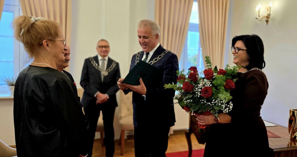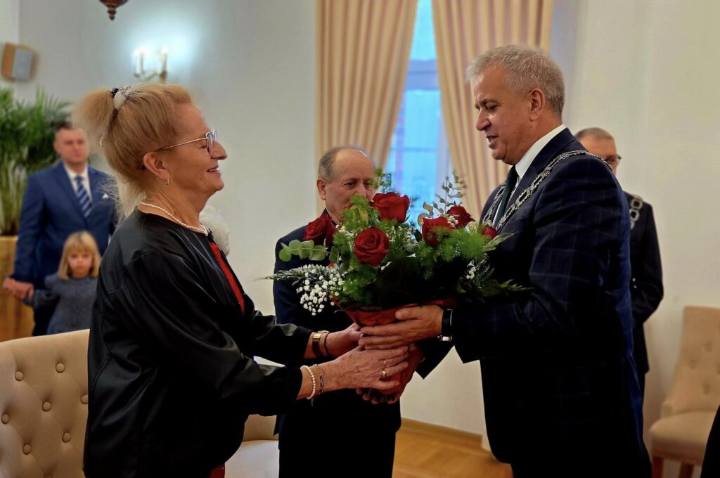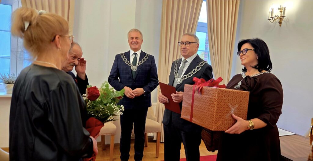 Do grona składających w tym wyjątkowym dniu złotych godów dołączyli obecni na uroczystości burmistrz Robert Zborowski oraz wiceprzewodniczący rady Edward Trejnis, a wydarzenie poprowadziła Renata Trembowelska, kierownik miejscowego USC. My również pragniemy przekazać najserdeczniejsze życzenia, przede wszystkim zdrowia, ale również miłości, pogody ducha, uśmiechu oraz wszelkiej pomyślności w życiu osobistym.
