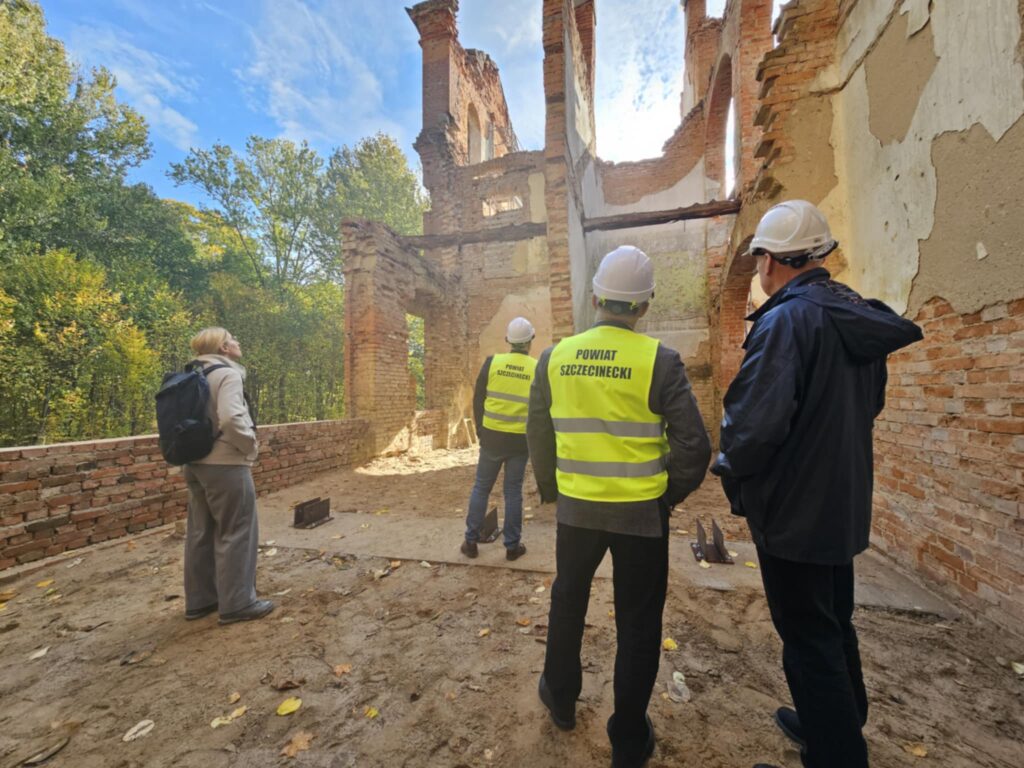 Na placu budowy w Juchowie ponownie zrobiło się tłoczno. W środę, 22 października, spotkali się starosta Krzysztof Lis, wicestarosta Daniel Rak, dyrektor Wydziału Inwestycji Urszula Paciorek, a także konserwator zabytków, inspektor budowy, projektant oraz przedstawiciel wykonawcy. Celem wizyty było omówienie kolejnych kroków w ratowaniu jednej z najcenniejszych ruin Pomorza Zachodniego.