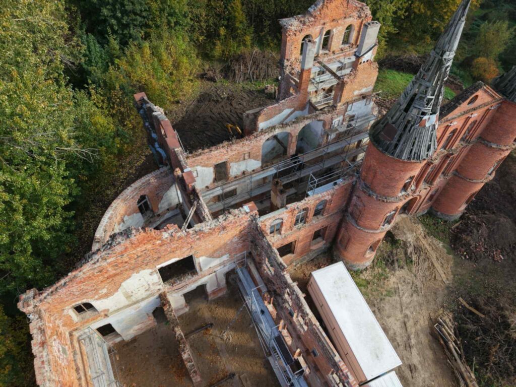 W części centralnej – tej z charakterystycznymi wieżami – zdemontowane zostaną dwa kominy, które stanowią poważne zagrożenie. Pozostałe prace będą przebiegały zgodnie z pierwotnymi założeniami: wzmocnienie murów, stabilizacja fundamentów, montaż rusztowań i odtworzenie wybranych elementów architektonicznych.