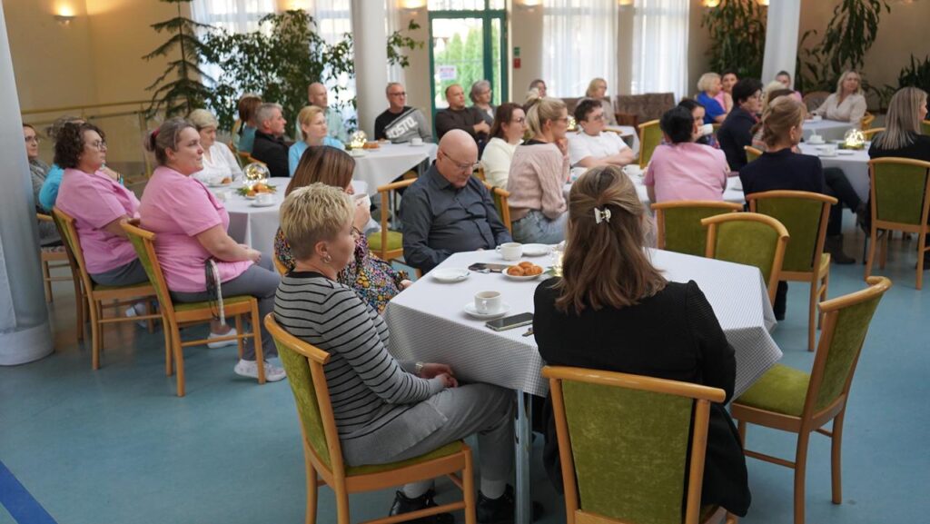 Życzenia były także okazją do podkreślenia, jak ważną rolę pełni borneński DPS – miejsce, w którym, jak powiedział starosta, „widać, że w tym Domu kocha się człowieka, a najważniejsi są ONI – pensjonariusze.”