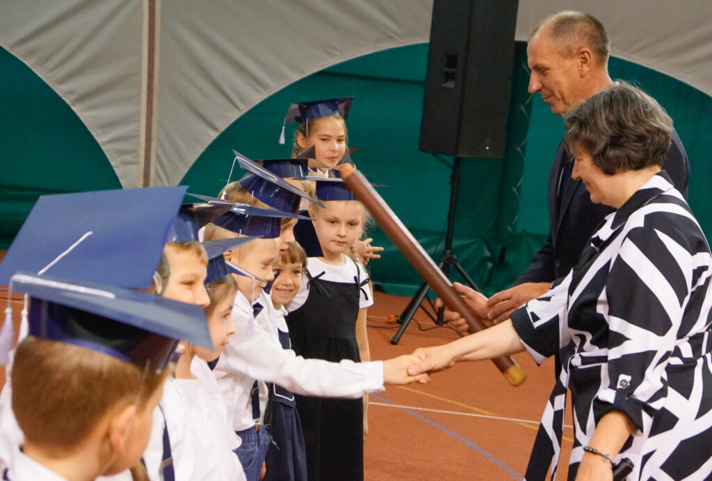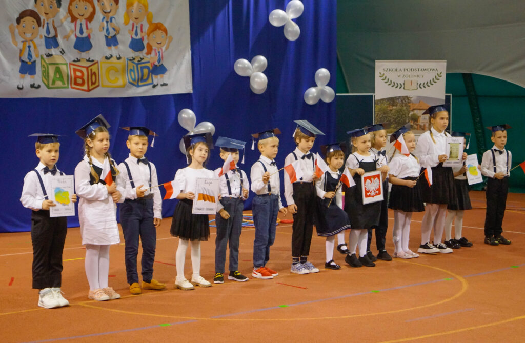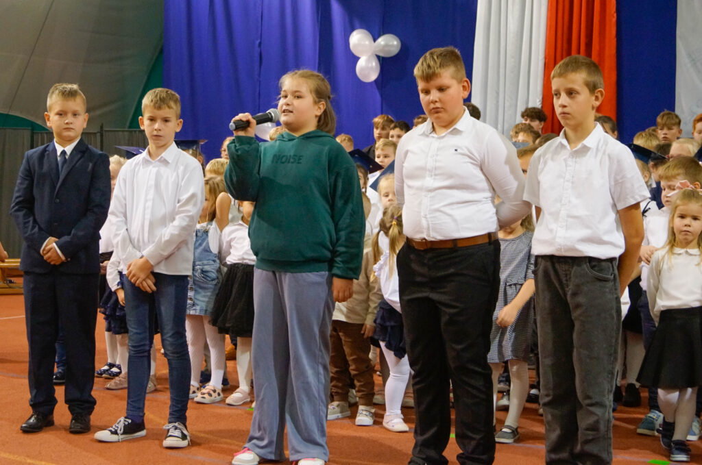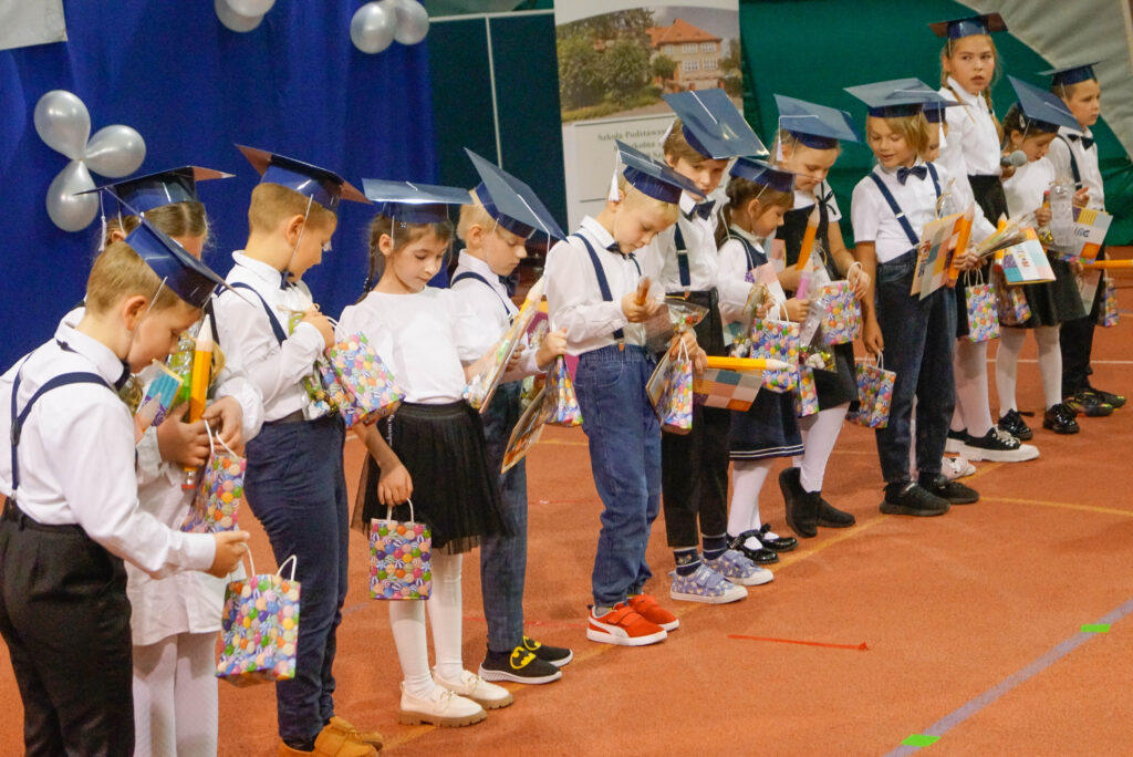 Jednym z ważniejszych punktów wydarzenia było także uroczyste pasowanie pierwszoklasistów. Na zakończenie ceremonii każdy z uczniów otrzymał pamiątkowy upominek, który z pewnością będzie przypominał o tym wyjątkowym dniu.