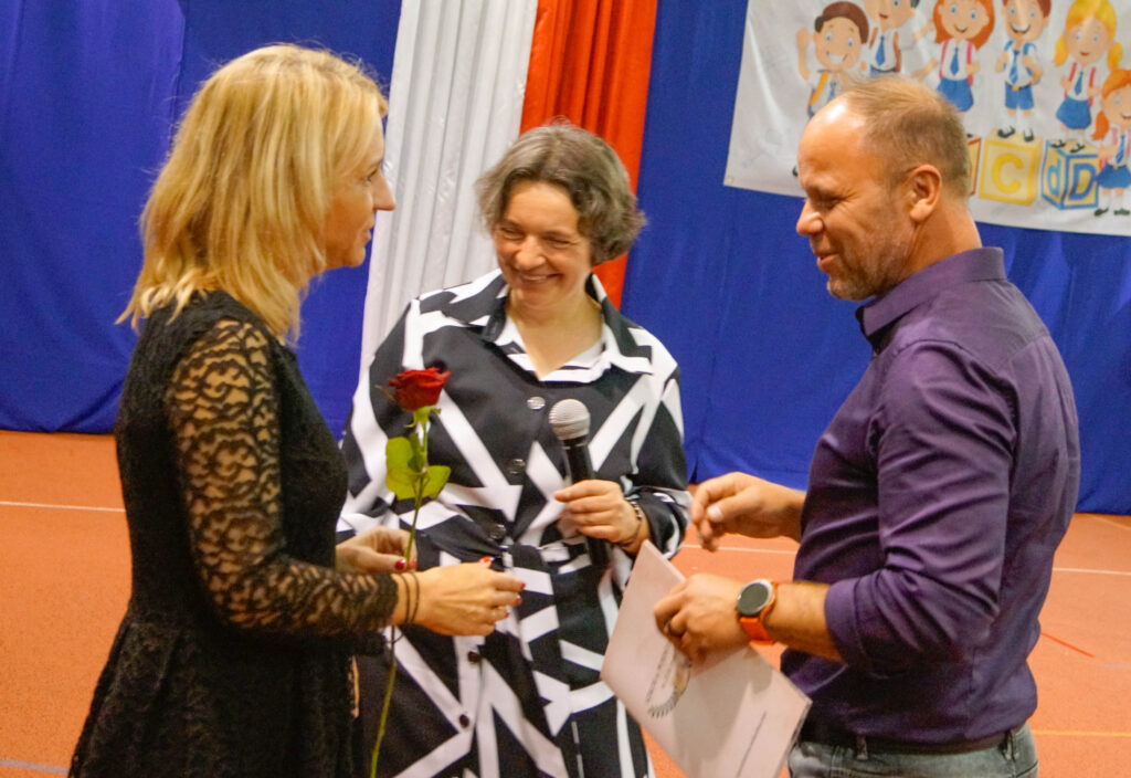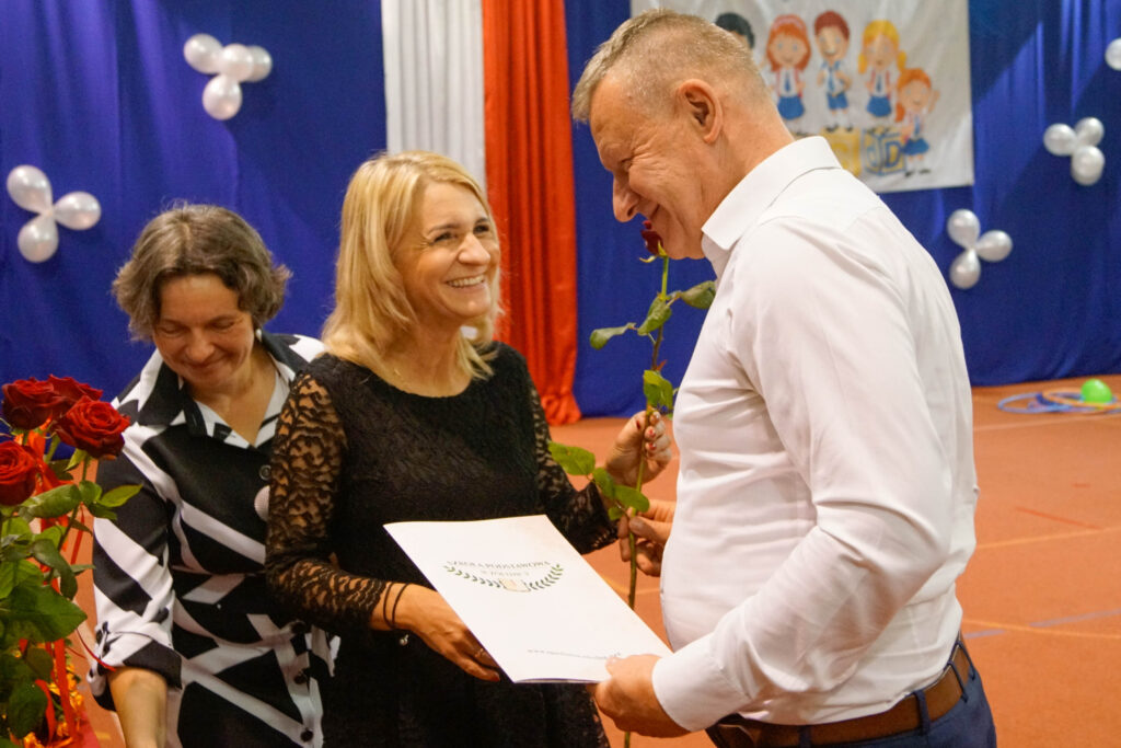 Nie zabrakło kwiatów i ciepłych słów, ale też uśmiechu i emocji, które przyniósł wyjątkowy spektakl słowno-muzyczny w wykonaniu uczniów – tych najmłodszych i tych już nieco bardziej doświadczonych. Każda piosenka, każdy gest i każde słowo były wielkim „dziękuję” dla wychowawców, nauczycieli i rodziców.