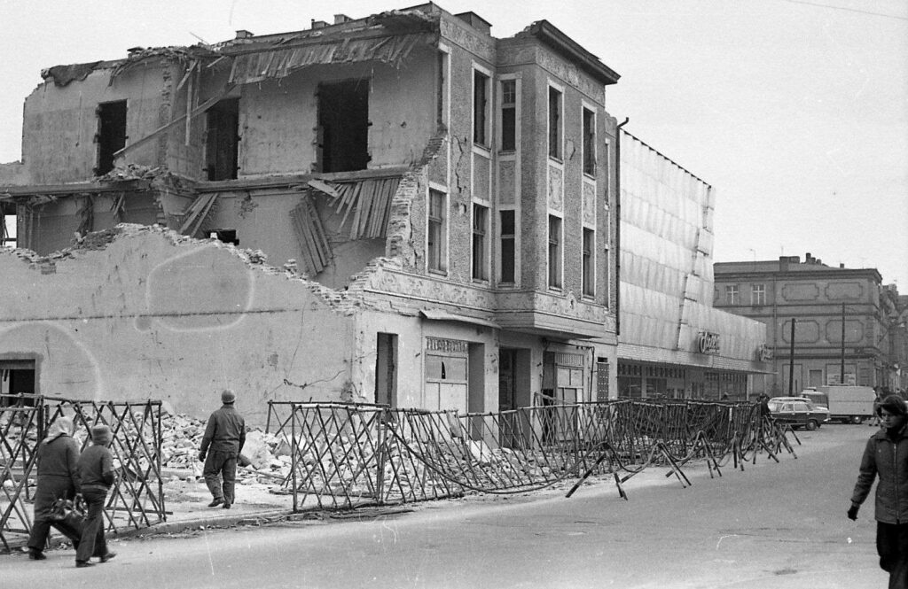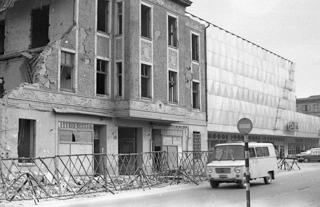 Nieżyjący już fotograf Henryk Zdon uwiecznił budowę „blaszaka”, co prawda od strony ulicy Podwale. Czy nieco późniejsze wyburzenie okazałej kamienicy stojącej na przedłużeniu ulicy Parkowej – dziś w tym miejscu jest parking i ulica Kisielewskiego.