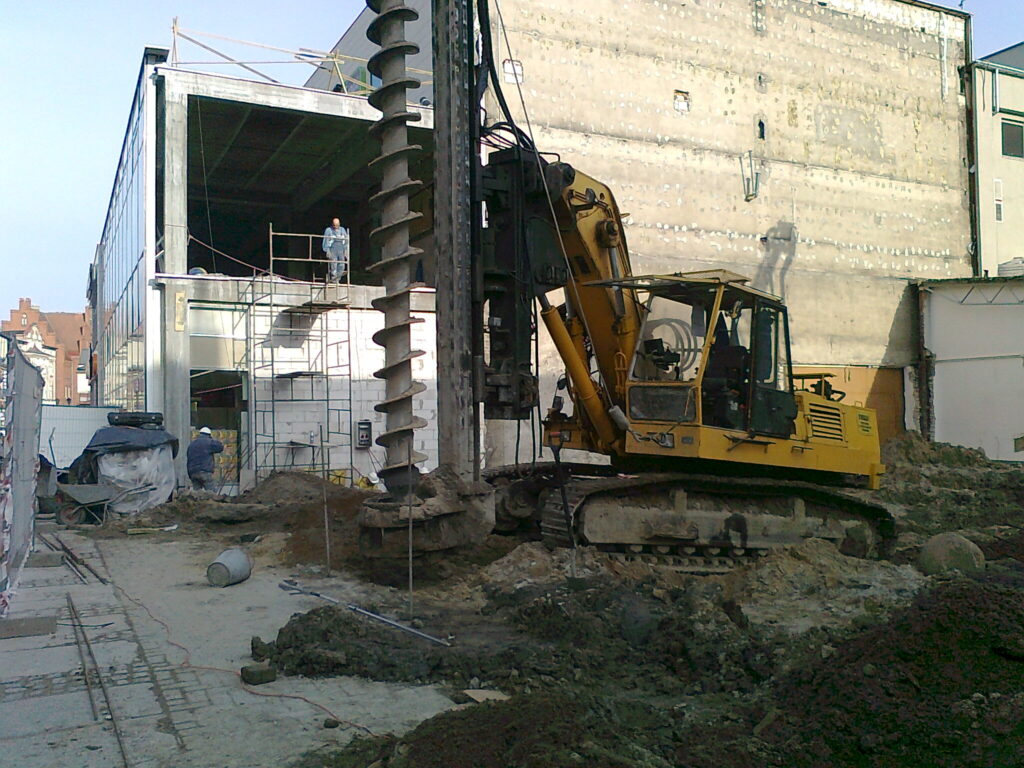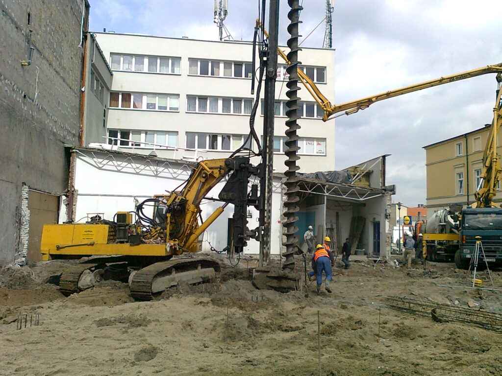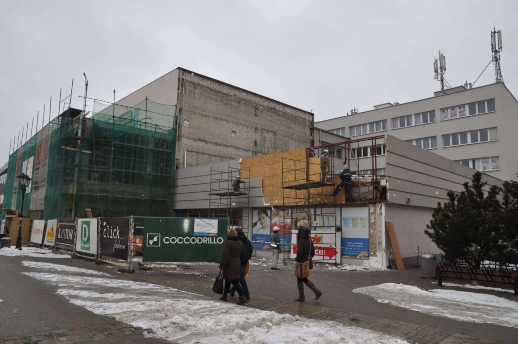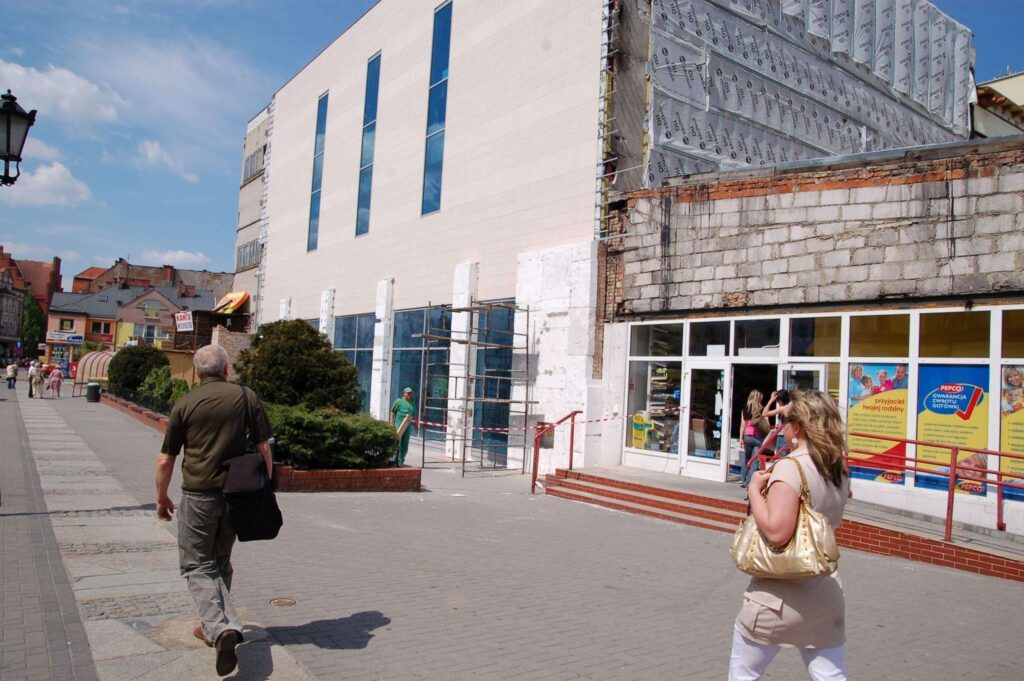 – Z ulicy wówczas oglądaliśmy budowę obiektu, mającego zadatek na klasyfikację „metal-szkło” – wspomina. – Do poziomu chyba II piętra wyrosła stalowa konstrukcja szkieletu. Potem na budowie nastała cisza, trwała bardzo długo, licząc było to bardzo dużo miesięcy a może i rok lub dwa. Plac budowy ogrodzili szczelnym drewnianym płotem. Ten stan ludzi denerwował i na jakimś przedwyborczym spotkaniem ze „spontanicznym udziałem ludności”, jakiś rozgniewany mężczyzna głośno wyraził opinię, że tam nic się nie robi, a czarnym płotem ogrodzili, żeby nie było widać, że tam martwa cisza. Prawda potem przeciekła i po cichu dowiedzieliśmy się, że został zaprojektowany odwrotnie, czyli tyłem do ulicy. Ten błąd naprawiali w czasie właśnie tej długiej przerwy tworząc poprawne ustawienie do spapranego pierwszego projektu.