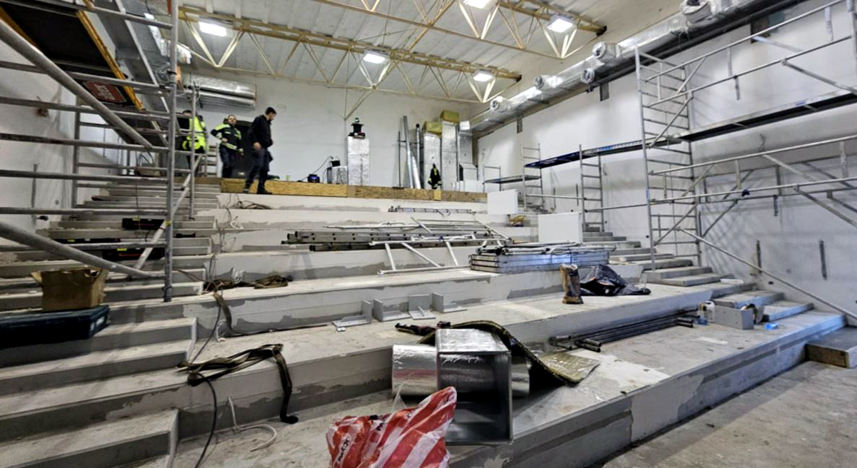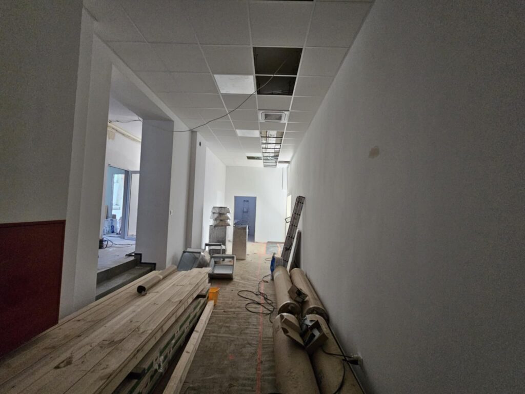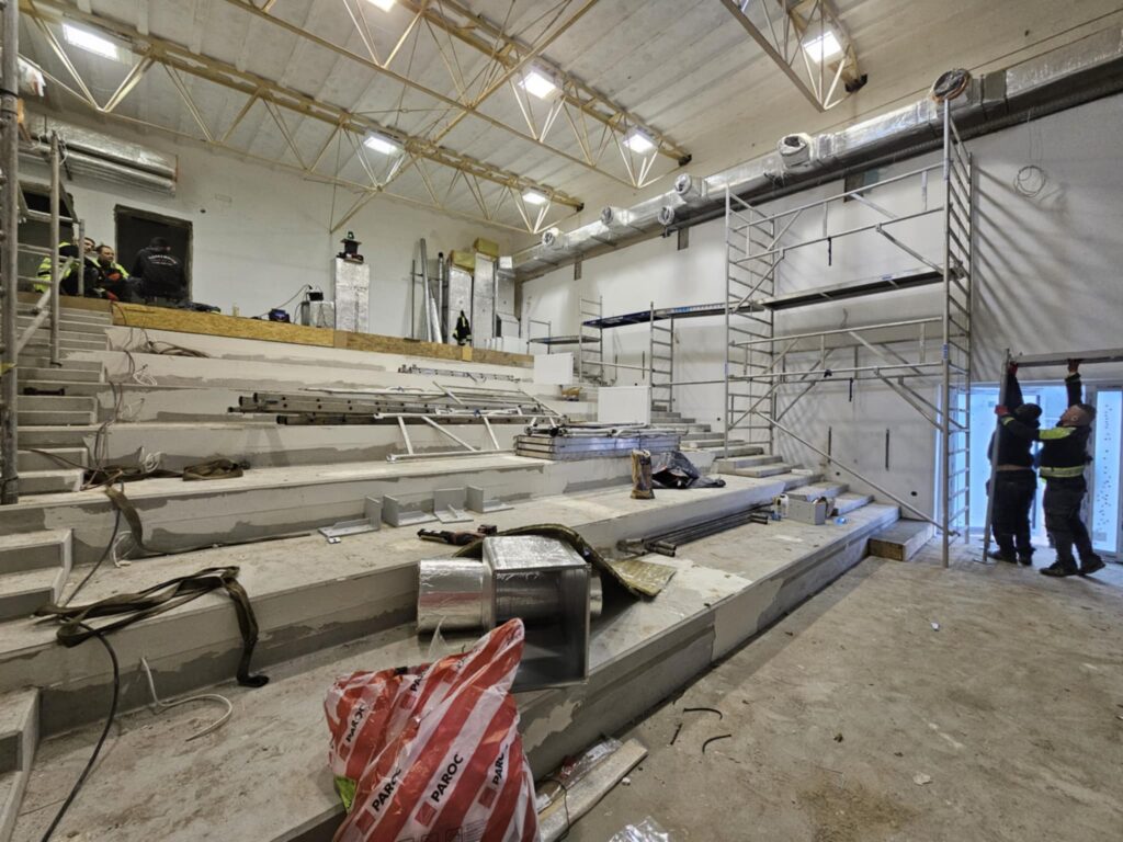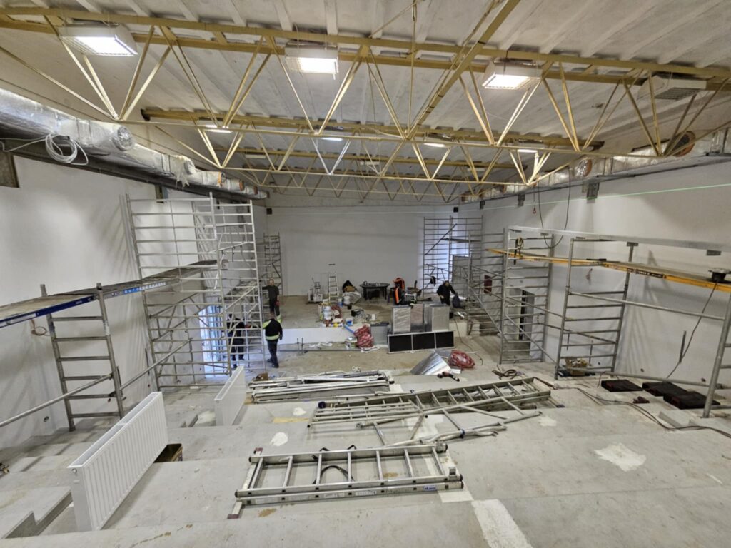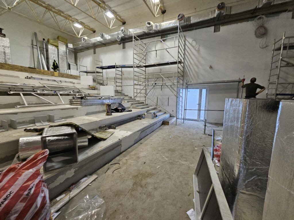 Realizacja Branżowego Centrum Umiejętności (BCU) przy ZST nabiera tempa. Stara sala gimnastyczna zamienia się w nowoczesną przestrzeń szkoleniową i konferencyjną. Zgodnie z planem, z dotychczasowej przestrzeni sportowej wyłania się wielofunkcyjna sala szkoleniowo-konferencyjna.