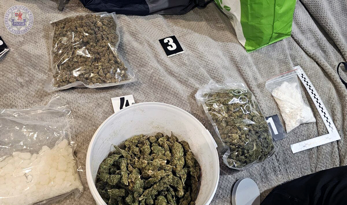 Szczecineccy policjanci zatrzymali 22-letniego mężczyznę, u którego znaleźli znaczną ilość narkotyków w postaci marihuany, amfetaminy, mefedronu oraz tabletek o łącznej wadze ponad 7 kg!
