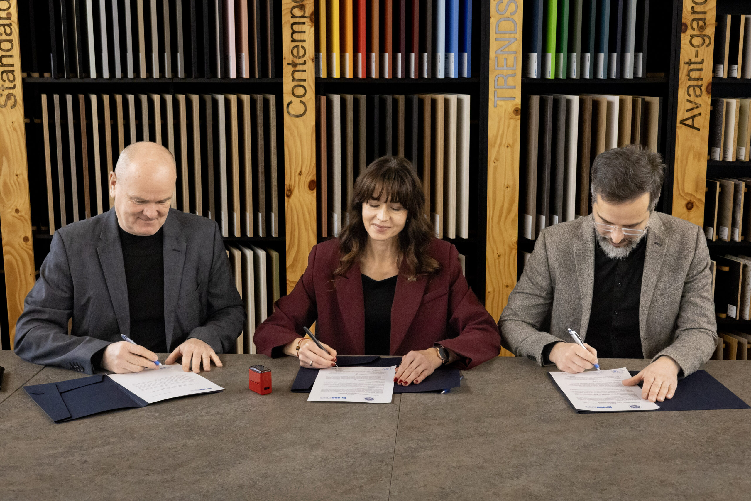 W uroczystym podpisaniu umowy wzięli udział przedstawiciele obu stron: dr Anna Przekota, pełnomocnik rektora ds. praktyk studenckich, oraz reprezentanci firmy Kronospan – Krzysztof Aleksandrowicz, członek zarządu Kronospan Polska Sp. z o.o., oraz Jakub Piniarski, zastępca dyrektor personalnej Kronospan Polska.