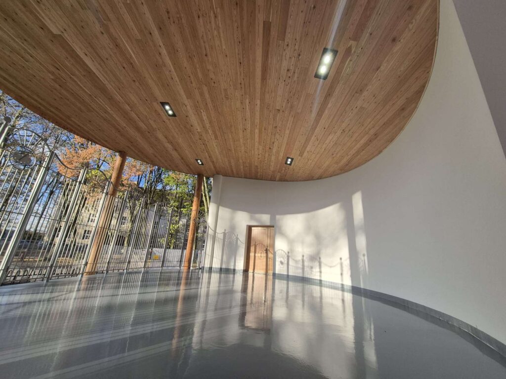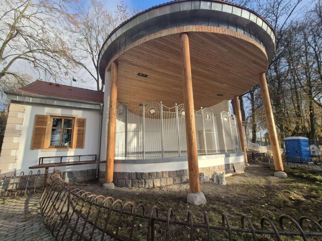 Rotunda – zardzewiałą blachę na dachu zastąpiła dachówka – została wzmocnione stalowymi belkami. Całość konstrukcji poniesiono o kilkanaście centymetrów. W oczy rzucają się piękne, modrzewiowe słupy podtrzymujące konstrukcję, które zastąpiły sfatygowane drewniane podpory. Odnowiona jest także elewacja i stolarka okienna i drzwiowa. Nowe poszycie sufitu z drewna modrzewiowego uzupełniają silne lampy oświetlające scenę.