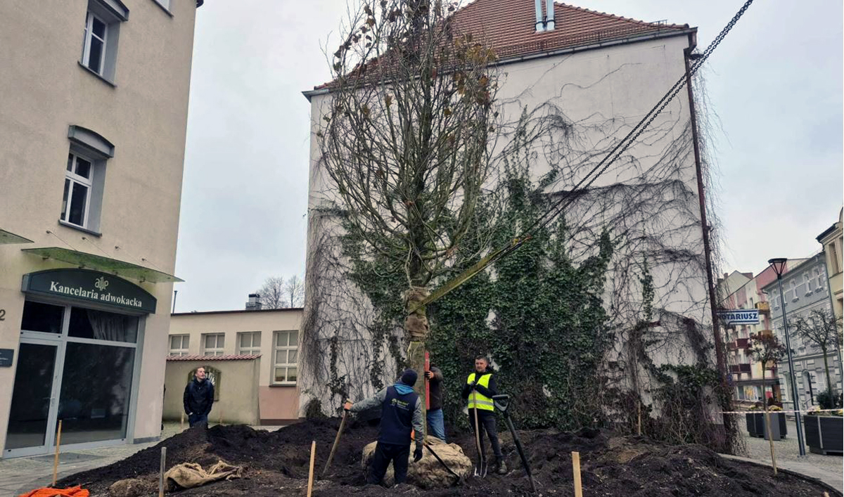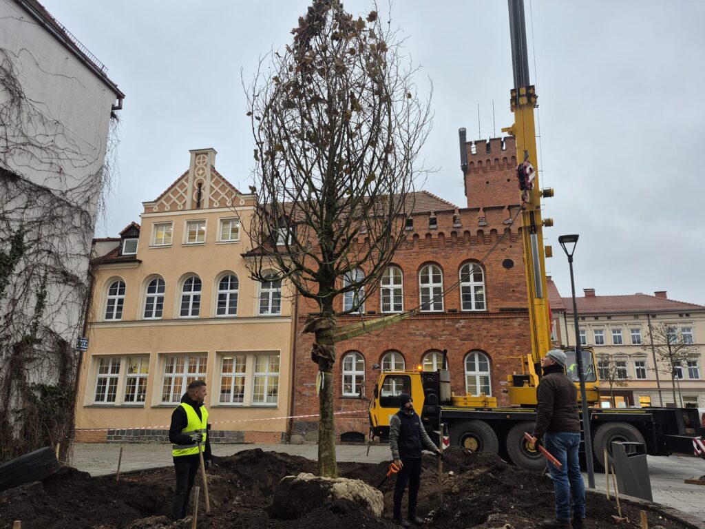 Ale to był dzień… Zaraz po choince na plac przed szczecineckim ratuszem wjechał okazały platan klonolistny.