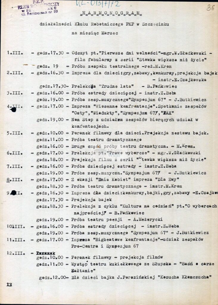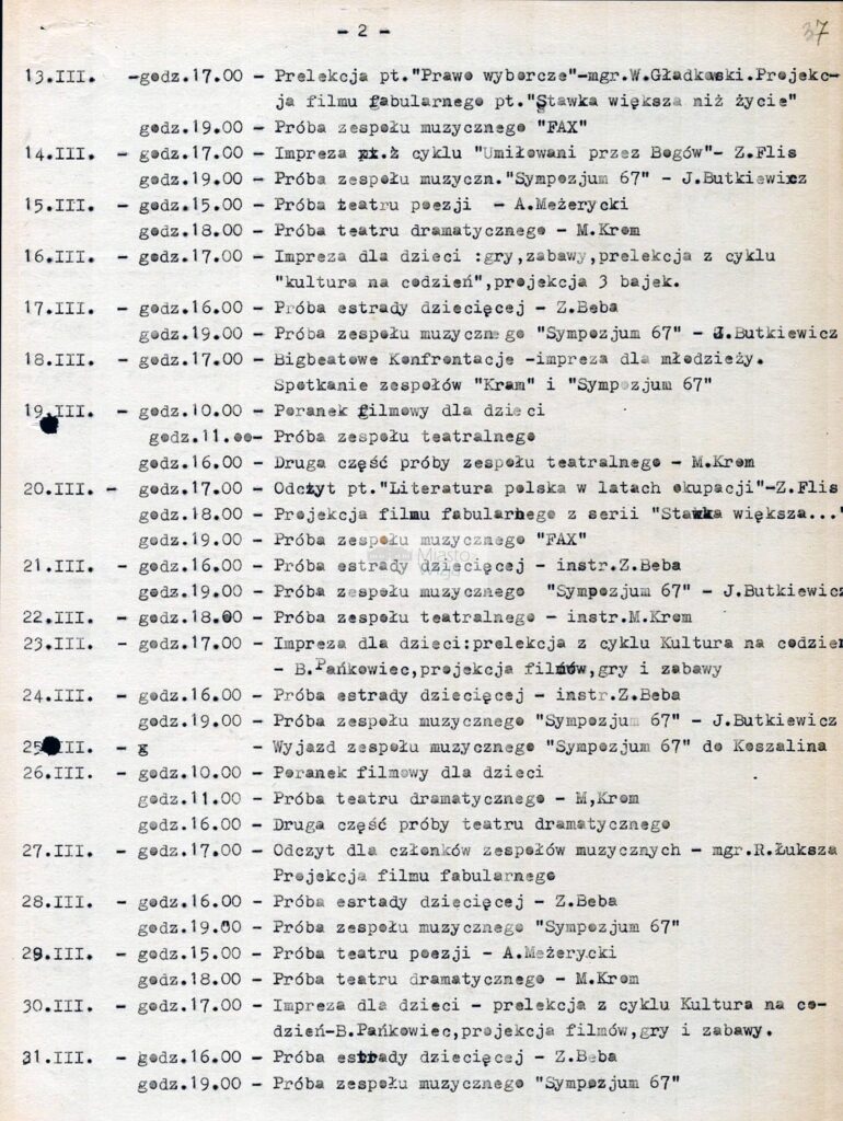 To nie wszystko, co działo się tamtego marca w Klubie Robotniczym PKP. Więcej bardzo ciekawych imprez na załączonych zdjęciach planu działalności sprzed 51 laty.