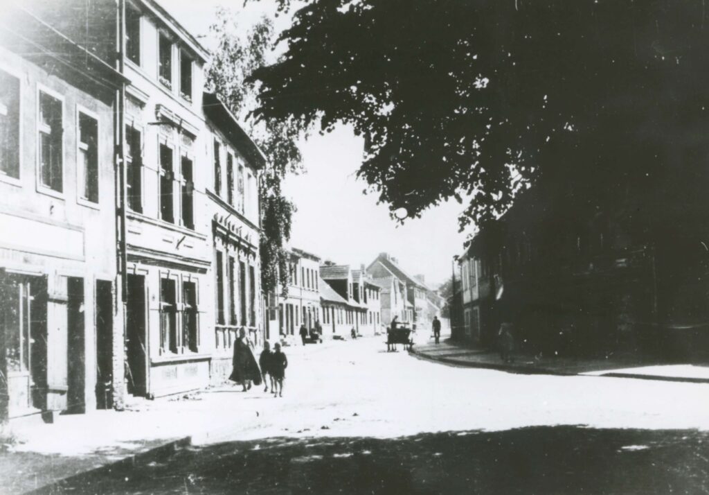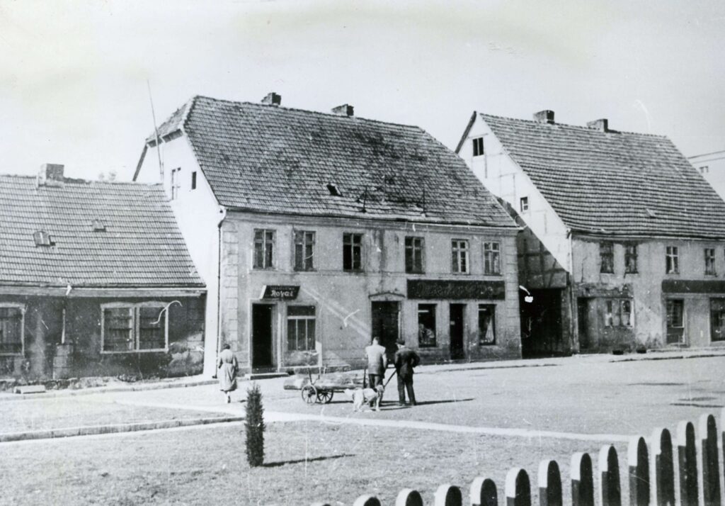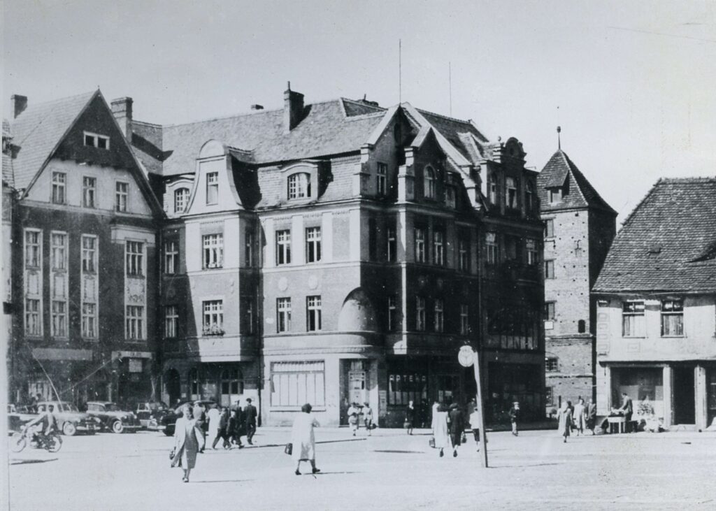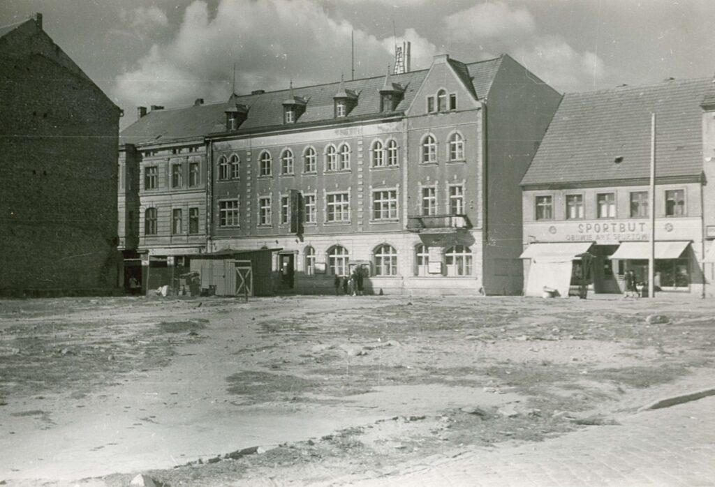 Kadr wykonany na placu Wolności w kierunku ulicy Bohaterów Warszawy ukazuje nieistniejącą już kamienicę narożną. Z kolei na fotografii z ulicy 9 Maja widoczna jest pusta przestrzeń po całym kwartale zabudowy zniszczonym przy skrzyżowaniu z ulicą Wyścigową. Obecnie stoi tam jeden z pierwszych bloków mieszkalnych wybudowanych w Szczecinku po zakończeniu wojny.