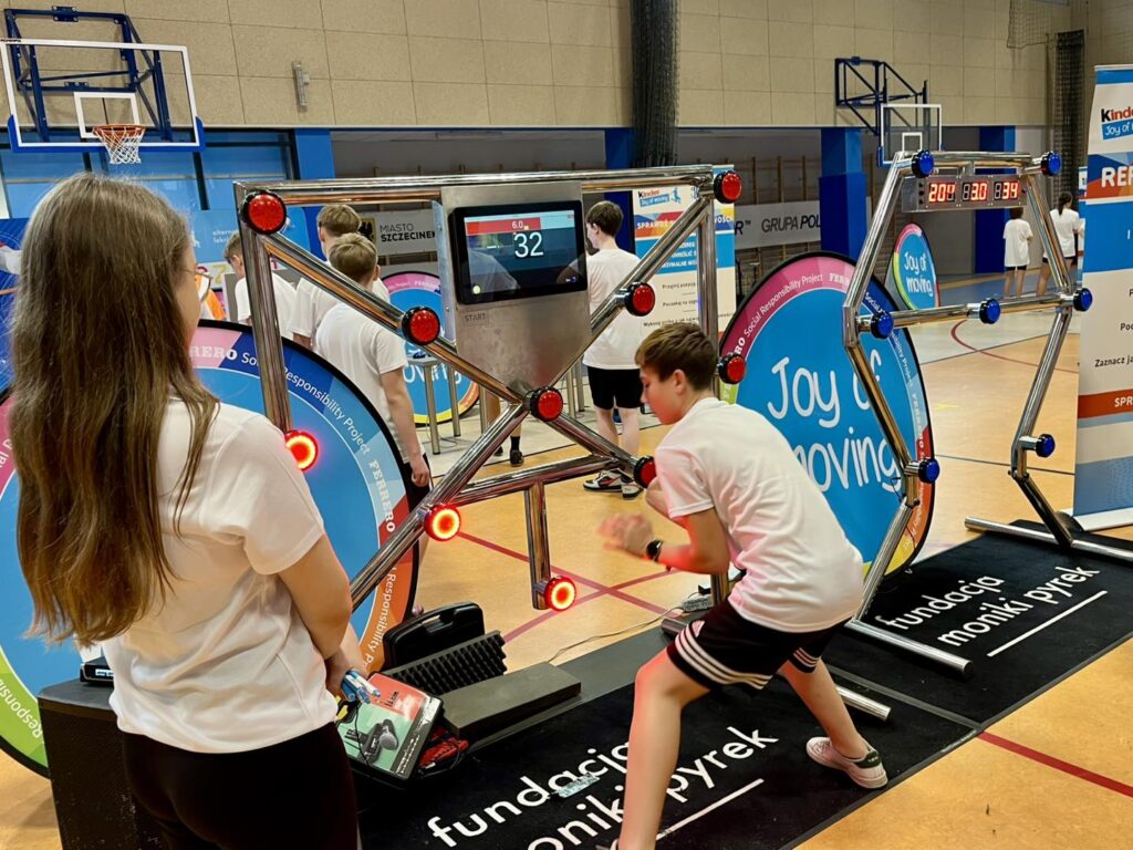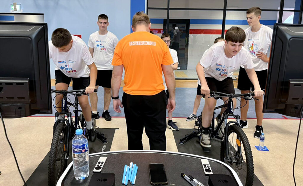 W hali sportowej popularnego Adasia stanęło mnóstwo dotychczas niewidzianego tutaj sprzętu, który poprzez wykorzystanie najnowszych zdobyczy techniki urozmaicała sportową rywalizację. Dzieci mogły korzystać m.in. ze stacjonarnych rowerów połączonych z ekranami, ergometrów, ruchomej ścianki wspinaczkowej, urządzeń określających poziome ich refleksu czy też maszyny do przeciągania liny. -Jak tylko wszedłem na salę to po prostu oniemiałem, jak zobaczyłem jak ćwiczycie na różnych stacjach, jak dobrze się bawiliście. Sam chciałbym mieć taką lekcję WF-u. Bo lekcje WF-u są po to, żeby sportem się bawić, można fajną zajawkę – mówił również obecny na inauguracji nietypowej lekcji wiceburmistrz Maciej Makselon, prywatnie teoretyczny oraz praktyczny miłośnik sportu.