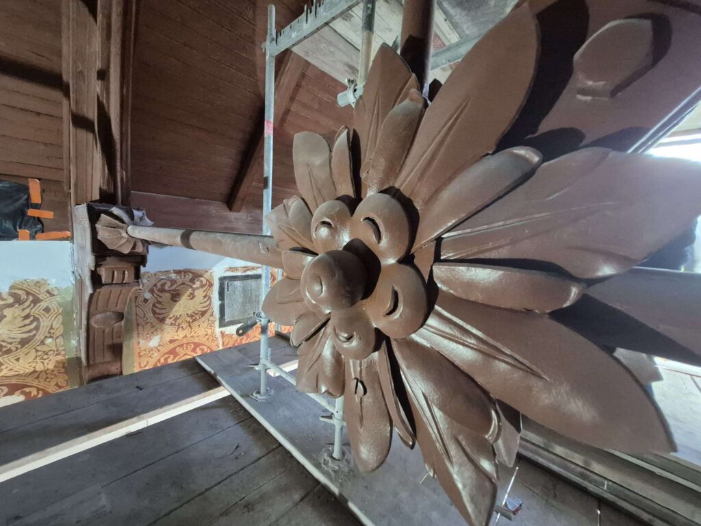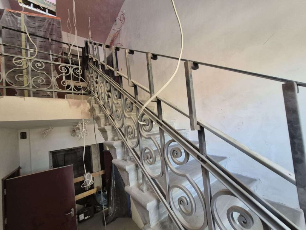 Masa pracy jest przy renowacji mocno zdewastowanych schodów. Trzeba było uzupełnić liczne braki, łatać dziury, a całość robót nadzorował konserwator zabytków.