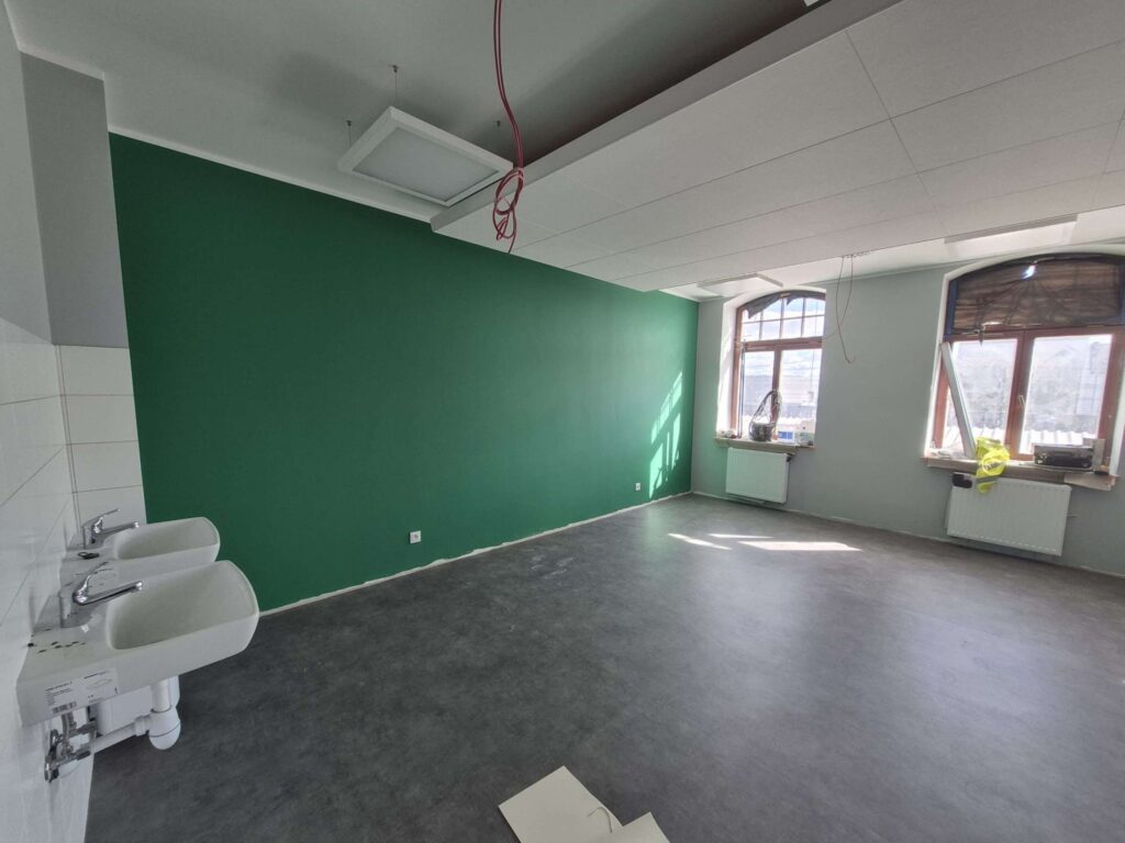 Najbardziej zaawansowane są prace w prawym skrzydle budynku dworca, który pomieści sekcje SAPiK-u. W części pomieszczeń są już nawet wykładziny, pomalowane ściany i oświetlenie.
