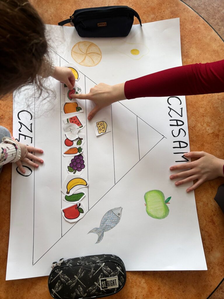 Jak zgodnie podkreślają pozostałe pomysłodawczynie projektu – Marta Kurjatnyk, Klaudia Pawłowska oraz Patrycja Adamczyk – zajęcia opierały się na wspólnym tworzeniu piramidy zdrowego żywienia, komponowaniu własnych „zdrowych talerzyków” w postaci prac plastycznych, ale także na tańcu i rytmice. – Spotkałyśmy się z dużym zaangażowaniem że strony dzieci i entuzjazmem – z dumą podsumowują uczennice popularnej Elki.