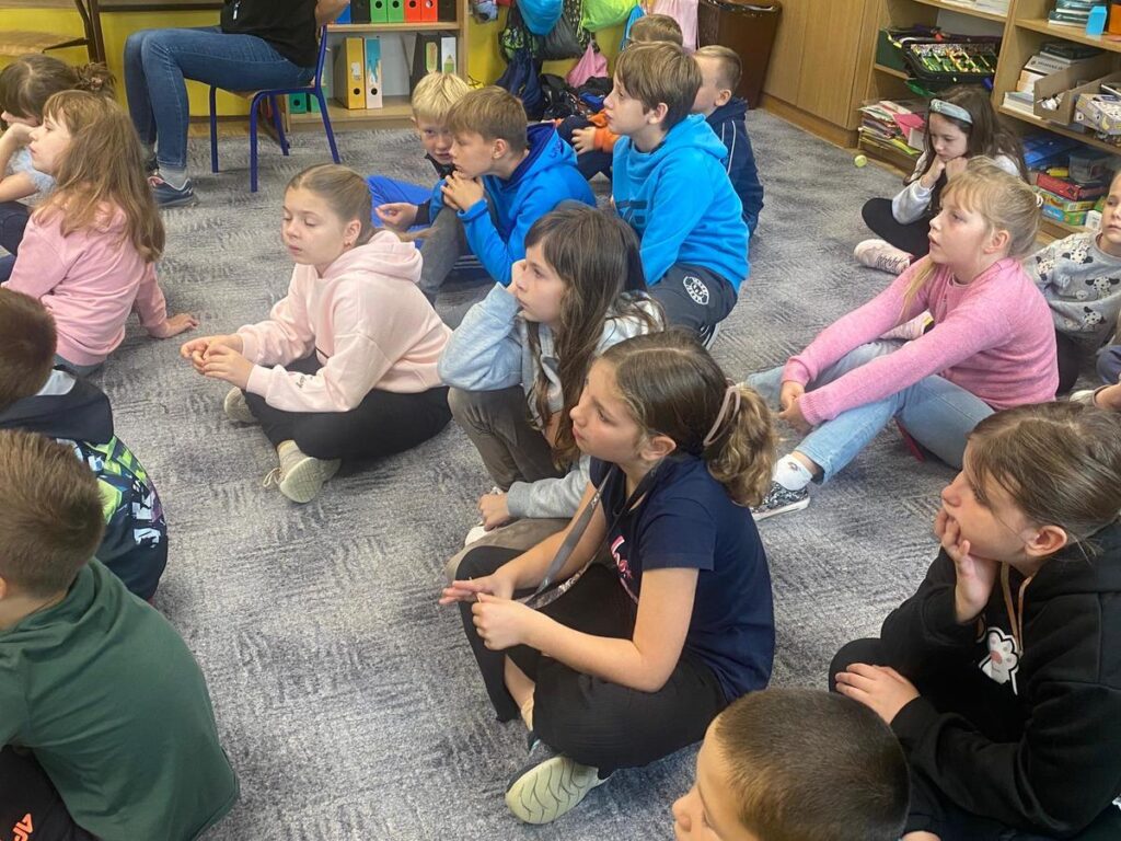Dzięki filmikowi edukacyjnemu, który stał się punktem wyjścia do ożywionej rozmowy, dzielnicowy mógł wyjaśnić jakie zagrożenia i konsekwencje niosą za sobą zachowania, które krzywdzą lub ranią inne osoby. Uczniowie bardzo chętnie dzielili się swoimi spostrzeżeniami opowiadając o sytuacjach których same doświadczyły w kontakcie ze swoimi rówieśnikami w szkole lub poza nią a dzielnicowy podpowiadał jak należy się w takie sytuacji zachować i kogo należy poprosić o pomoc.