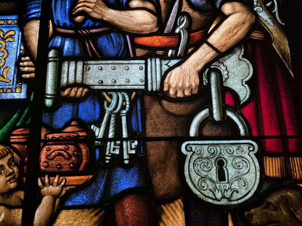 Same zawiasy to już jednak dzieło Krzysztofa Wronowskiego, szczecineckiego kowala artystycznego, który odwzorował je posiłkując się obrazem z witraża z sali obrad Rady Miasta Szczecinek. To dzieło z lat 20. XX wieku przedstawiające pochód rzemieślników, w tym kowala niosącego wspomniane zawiasy. Ich wizerunek zainspirował miejską konserwator zabytków Martę Rodziewicz, która skorzystała z okazji, jaką była wymiana drzwi, aby uzyskały one stylowy wygląd.
