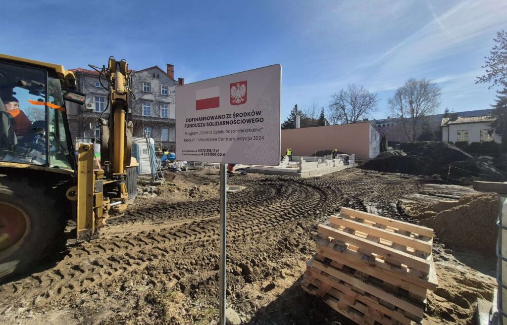 Długotrwała zima zastopowała na kilka tygodni poważniejsze roboty na placu budowy Centrum Opiekuńczo-Mieszkaniowego. Teraz, gdy mrozy i śniegi ustąpiły, prace wznowiono. Fundament jest już gotowy, obecnie budowlańcy są na etapie stawiania ścian.