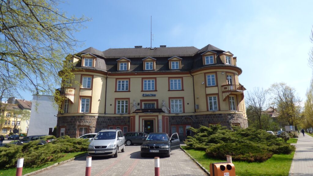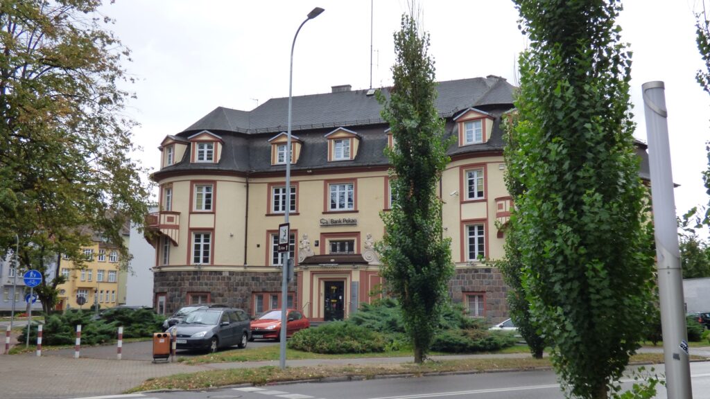 Dokładnie sto lat po wybudowaniu dobiegła końca bankowa historia gmachu przy ulicy Mickiewicza. Władający nim od ponad ćwierć wieku Bank Pekao (ten z żubrem) wyprowadził się z budynku, który od początku projektowano jako siedzibę instytucji finansowej. A „od początku” oznacza rok 1925, gdy wzniesiono go jako siedzibę Kreissparkasse, czyli Powiatowej Kasy Oszczędności – lokalnego banku obsługującego miejscowy biznes.