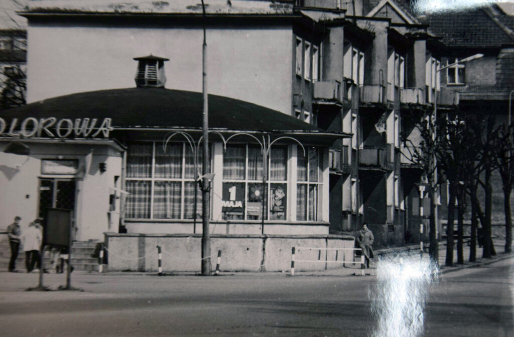 Nie mogło w tej wycieczce w czasie zabraknąć i kawiarni Kolorowa. Kultowy lokal ze okrągłą salą i masą wspomnień mieszkańców w wieku 50 plus. W witrynie kawiarni zauważymy plakat z okazji 1 Maja – Święta Pracy, kolejny symbol tamtej epoki.