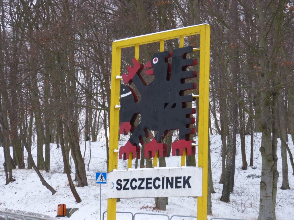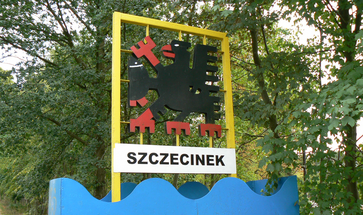 Mieszkańcy Szczecinka – no, może ci nieco już starsi – na pewno doskonale pamiętają „witacze” z wizerunkiem herbu miasta, czyli gryfa z jesiotrem, stojące na ulicach wjazdowych. Pokaźnych rozmiarów metaloplastyki były zainstalowane przy ulicy Kościuszki, Szczecińskiej i Pilskiej. Stały bodajże od lat 70. i stopniowo znikały. Ostatni „witacz” jakoś w pierwszych latach XXI wieku stał jeszcze przy Szczecińskiej (na zdjęciu u góry).