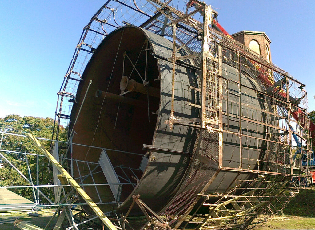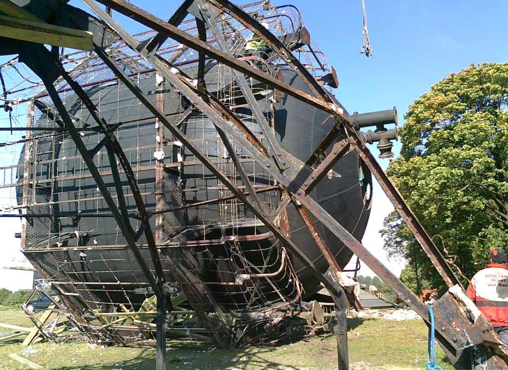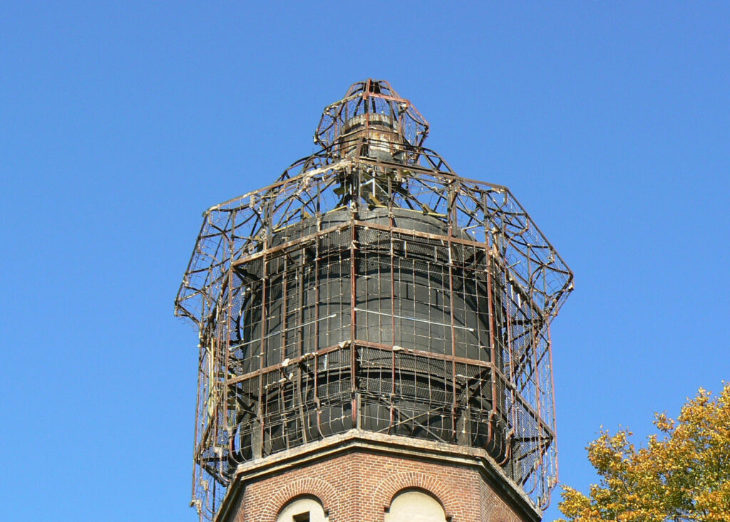 Demontaż zbiornika będzie możliwy po rozebraniu dachu i głowicy wieży. Dla konstrukcji głowicy wieży zbiornik jest elementem usztywniającym. Elementy stalowe konstrukcji oraz zbiornik, jak i elementy wspólnego posadowienia dachu i zbiornika na koronie trzonu wieży, zostały wykonane w 1912 roku, o połączeniach nitowanych, co sugeruje, że stal z tamtego okresu jest o niegwarantowanej spawalności. Zatem nie ma realnej możliwości wzmacniania elementów konstrukcyjnych.