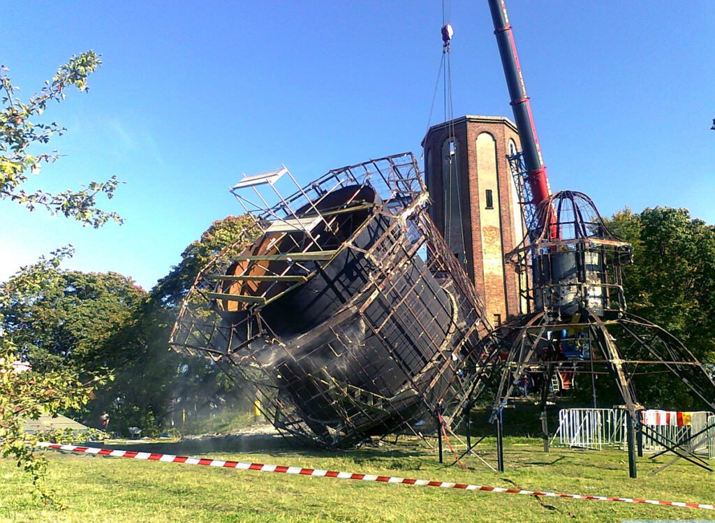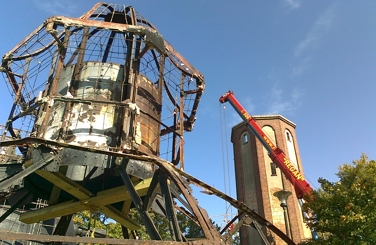 Nim wspomnimy o operacji demontażu wodociągowej budowli, zajrzyjmy do projektu rozbiórki opracowanego przez Urząd Miasta. Czytamy w nim m.in.: