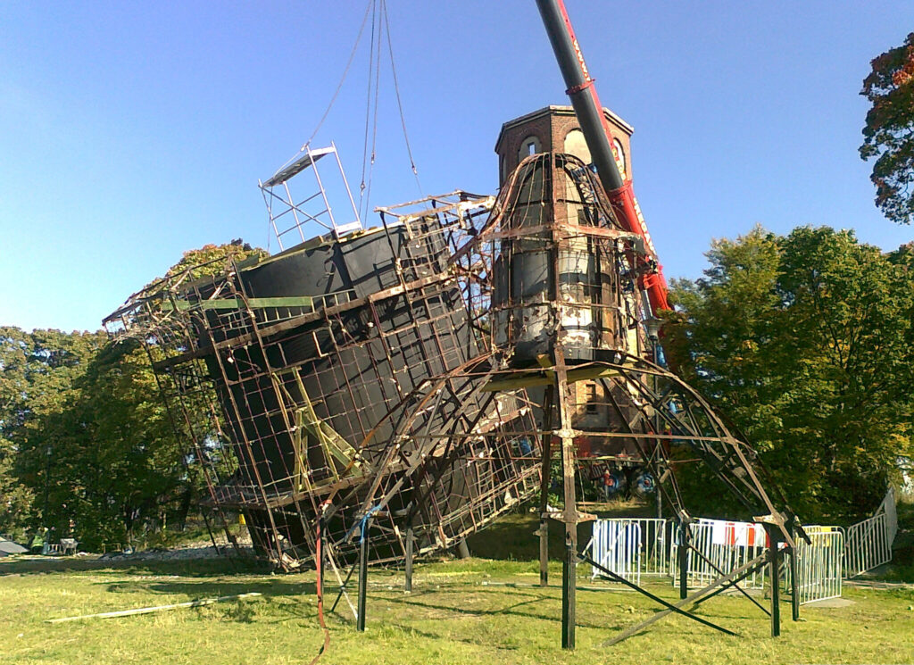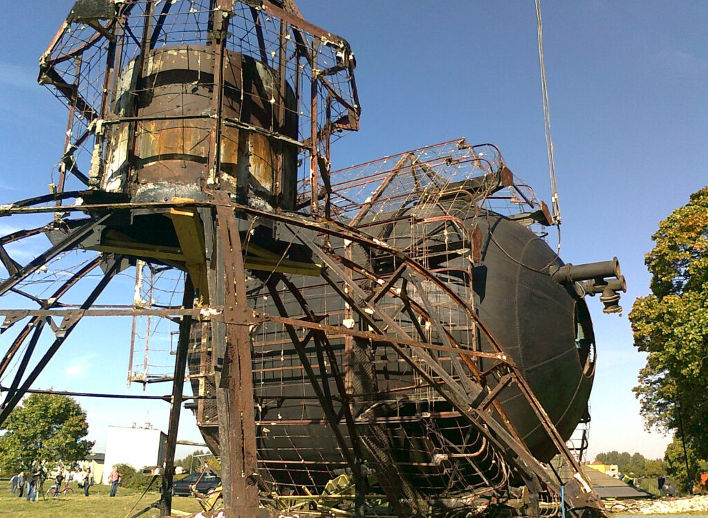 Tyle historia. Fachowcy z firmy PHU „Giedeon” z Grodziska Mazowieckiego uporali się z demontażem głowicy wieży w pierwszych dniach października 2012 roku. Na wzgórze pod wieżą wjechał potężny dźwig, który uchwycił kopułę i zbiornik od góry. Usunięto ostatnie zabezpieczenia i potężna konstrukcja po stu latach królowania nad Szczecinkiem znalazła się u stóp wieży.