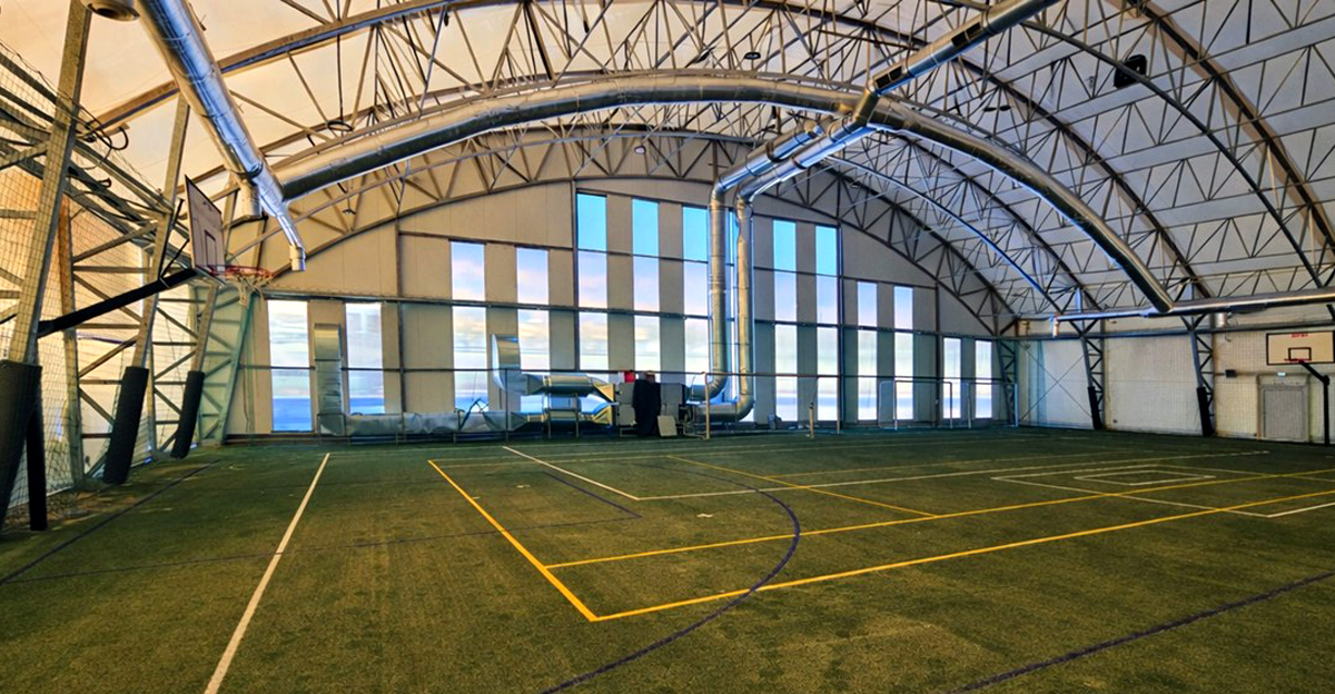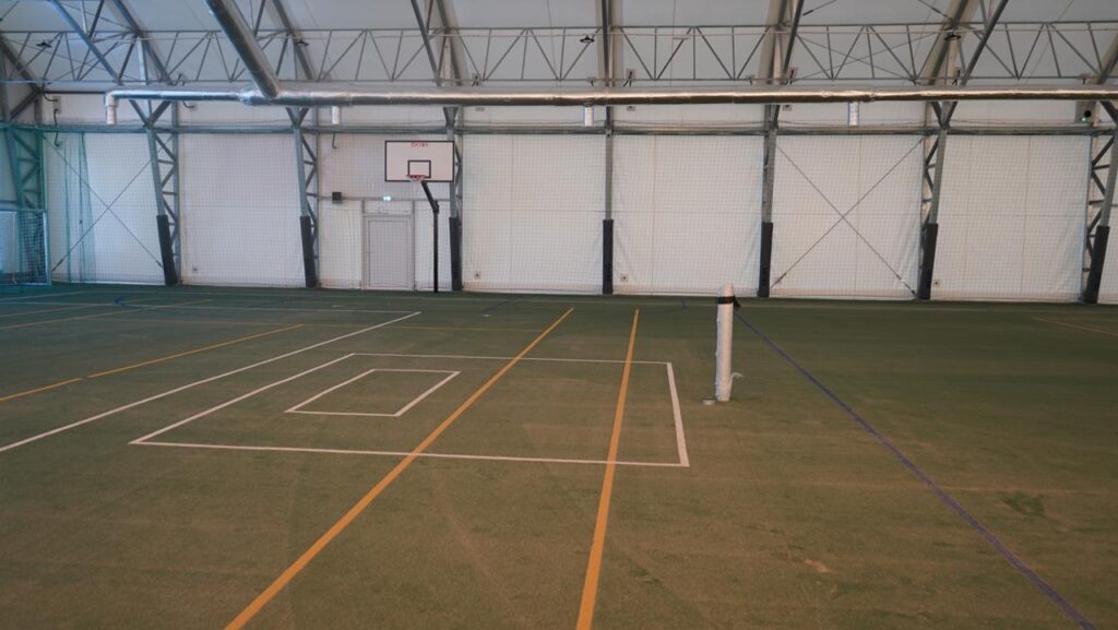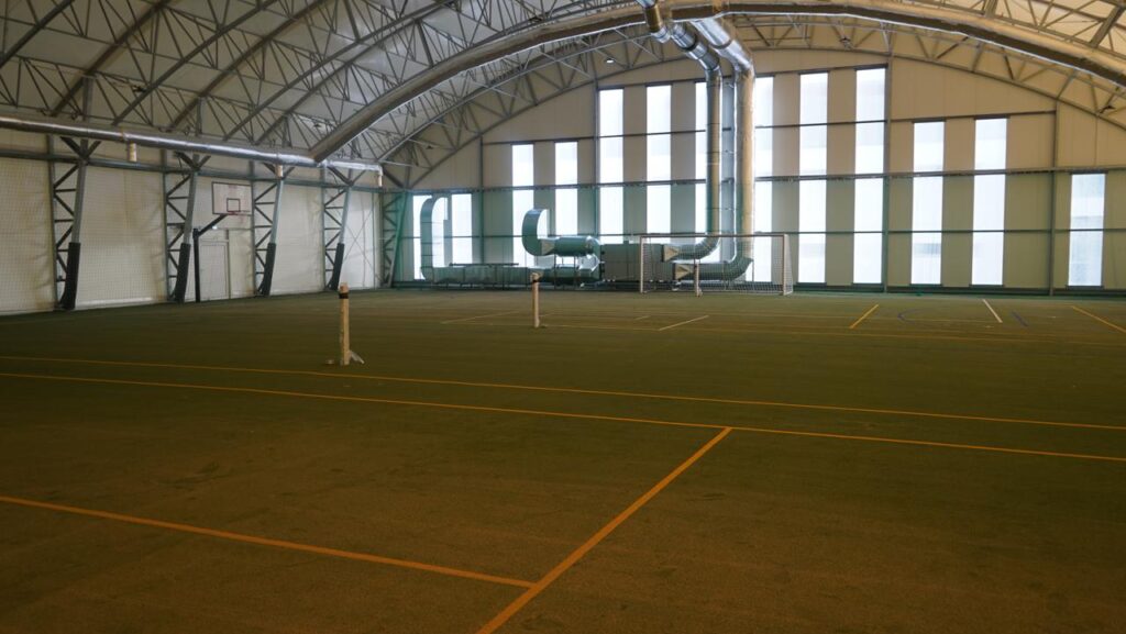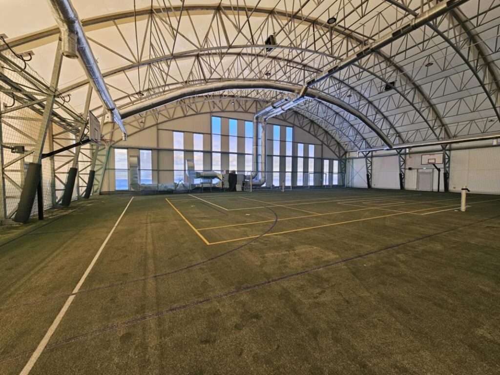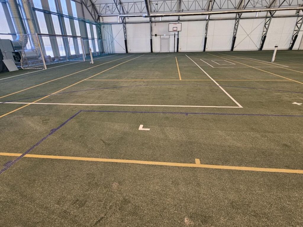 Na ogromnej powierzchni ułożono wysokiej jakości nawierzchnię, która nadała hali ostateczny, sportowy charakter. Wymalowano na niej komplet linii umożliwiających prowadzenie zajęć w kilku dyscyplinach jednocześnie. W obiekcie wyznaczono dwa pełnowymiarowe boiska do koszykówki, trzy boiska do tenisa, a także pola do gry w unihokeja i piłkę nożną. W przypadku futbolu nawierzchnia odpowiada połowie pełnowymiarowego boiska, co idealnie sprawdzi się podczas treningów i zajęć szkolnych.