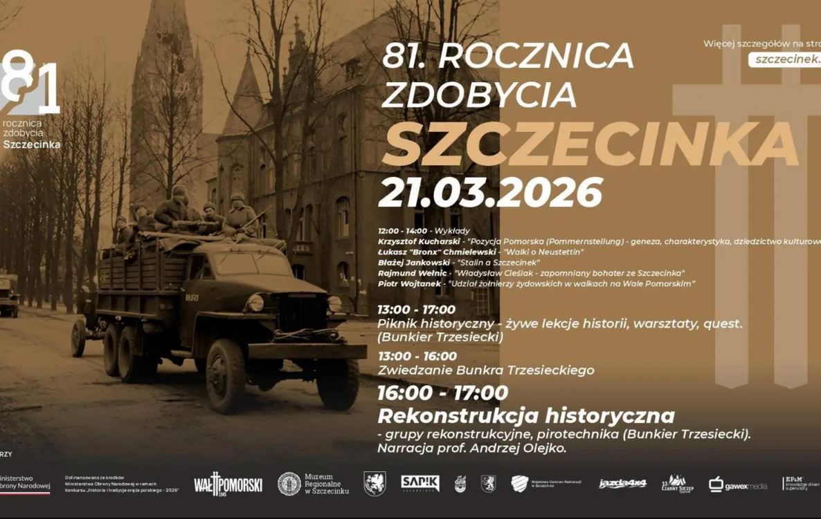 Strona główna Kalendarz imprez 21.03.26 | 81. rocznica zdobycia miasta i piknik historyczny | Szczecinek Kalendarz imprez 21.03.26 | 81. rocznica zdobycia miasta i piknik historyczny | Szczecinek Przez GRYF.tv - 20 marca 2026